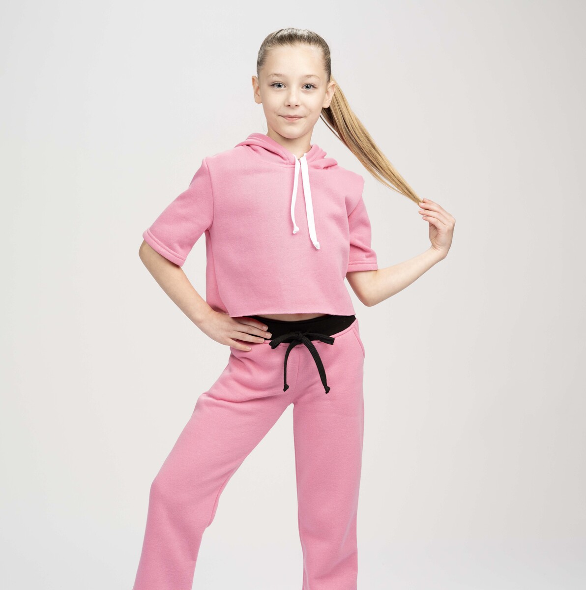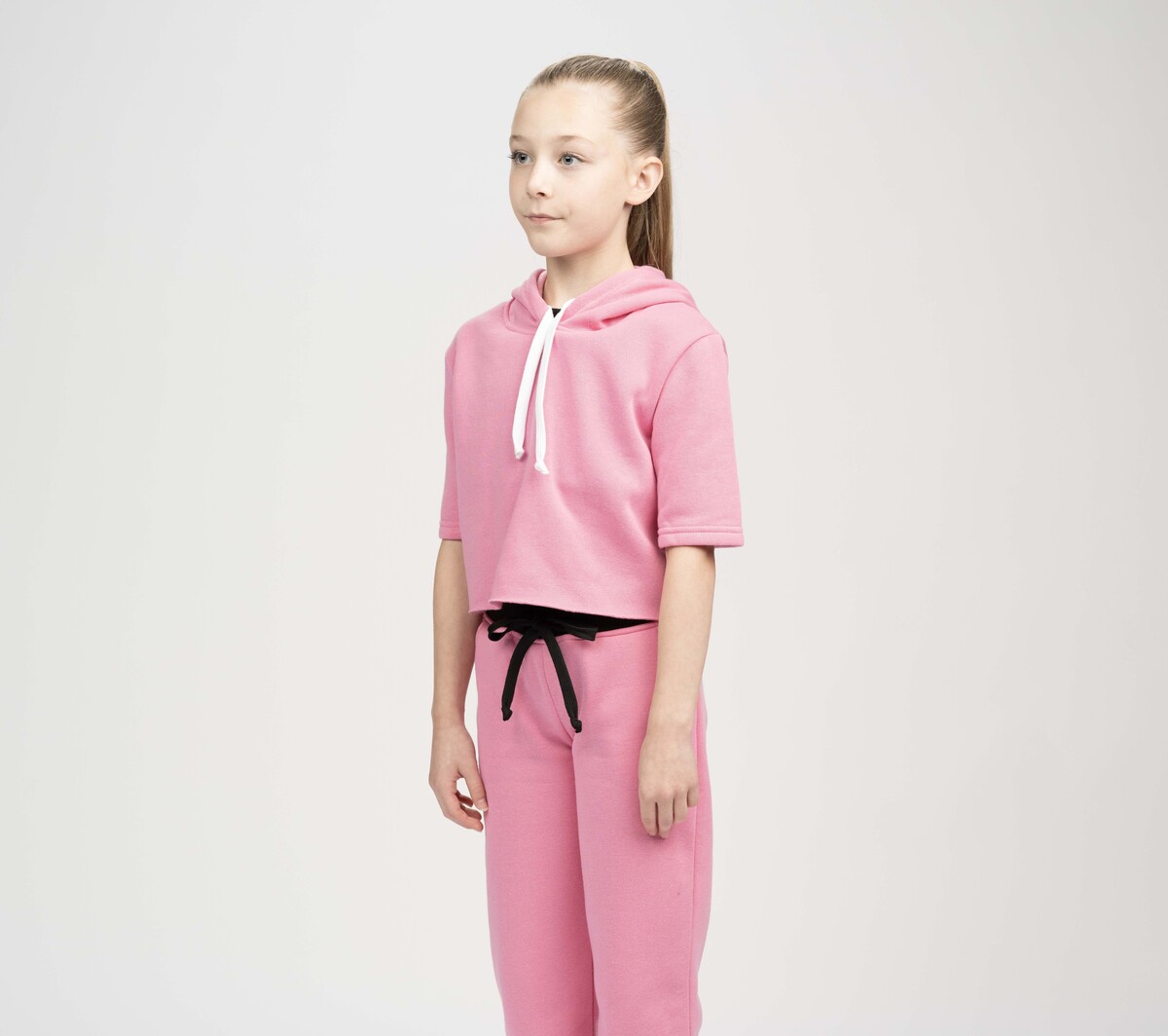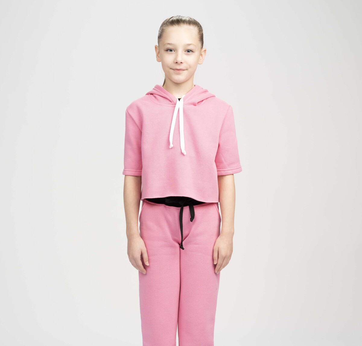 Studio Essentials Girls Short Sleeve Raw Edge Crop Hoodie