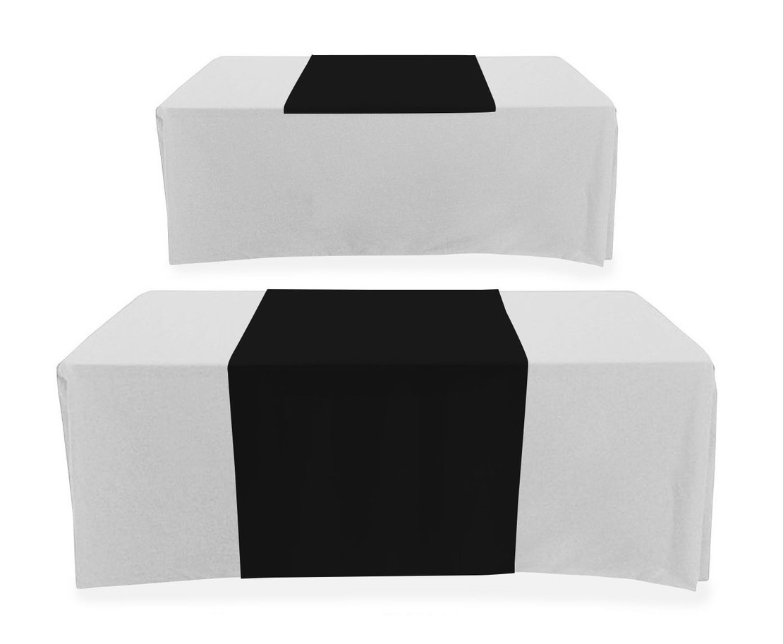 • Polycotton Twill Table runner, 30x60, for 6', 8', 4', 10' tables, Covers the top and front of the table, open back. heat transferred logo.