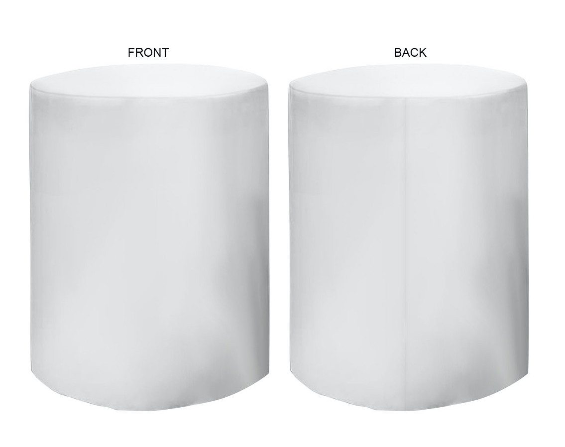 Round Fitted Cruiser Table Throw. Usage: Trade shows, Meetings, Career Fairs, Schools, Universities, Fundraisers. Price includes full color sublimation. Max Imprint: 31.5"W x 42.5"H.