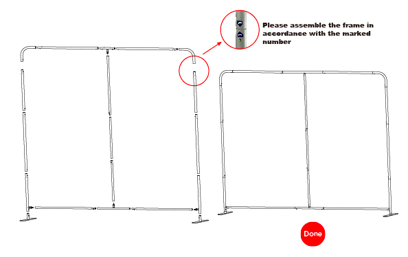 • Double sided graphics are viewable from both the front and back of the display. Graphics are printed on a premium polyester fabric. Wall cover slips over the frame like a pillowcase. Fabric contours to the frame for a form-fitted look. Hardware - Poles are labelled for easy assembly. Push-button connectors make assembly a snap. Slim swivel feet allow EuroFit Walls to be paired at angles. Includes padded carry case, 600 D polyester.